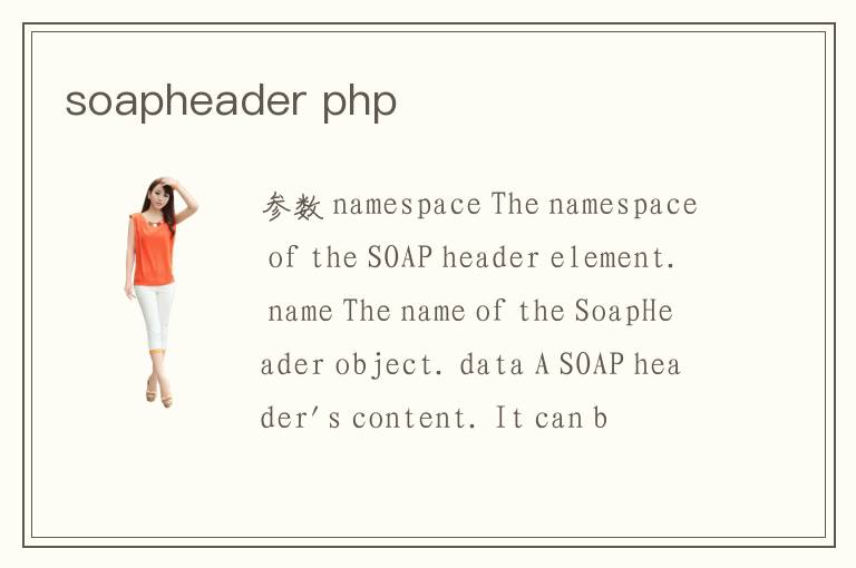 參數(shù) namespace The namespace of the SOAP header element. name The name of the SoapHeader object. data A SOAP header\'s content. It can be a PHP value or