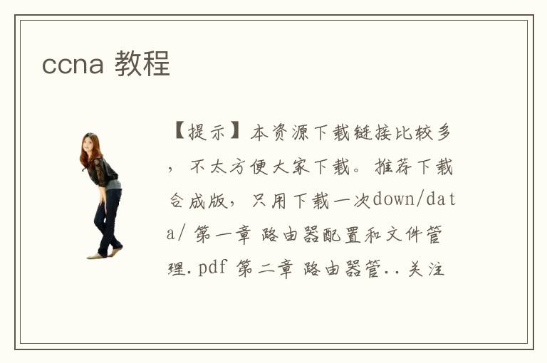 【提示】本資源下載鏈接比較多,不太方便大家下載。推薦下載合成版,只用下載一次down/data/ 第一章 路由器配置和文件管理.pdf 第二章 路由器管..