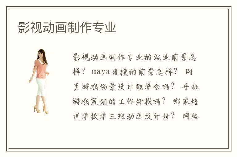 影視動(dòng)畫設(shè)計(jì)專業(yè)有前途嗎?這個(gè)專業(yè)應(yīng)該還是有發(fā)展的,在目前處于文化產(chǎn)業(yè)發(fā)展初期 電腦二維動(dòng)畫、電腦三維動(dòng)畫、動(dòng)畫運(yùn)動(dòng)規(guī)律、影視后期編輯與影視制作、影視語言、攝