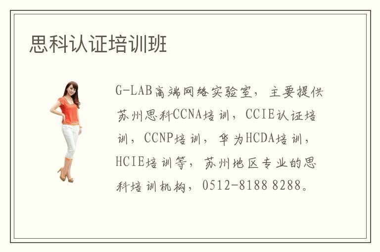 G-LAB高端網(wǎng)絡實驗室,主要提供蘇州思科CCNA培訓,CCIE認證培訓,CCNP培訓,華為HCDA培訓,HCIE培訓等,蘇州地區(qū)專業(yè)的思科培訓機構,0512-8188 8288。