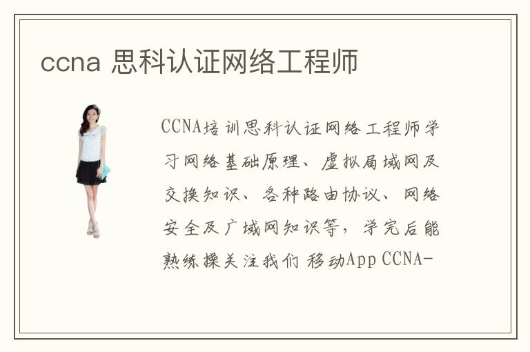 CCNA培訓(xùn)思科認(rèn)證網(wǎng)絡(luò)工程師學(xué)習(xí)網(wǎng)絡(luò)基礎(chǔ)原理、虛擬局域網(wǎng)及交換知識(shí)、各種路由協(xié)議、網(wǎng)絡(luò)安全及廣域網(wǎng)知識(shí)等,學(xué)完后能熟練操