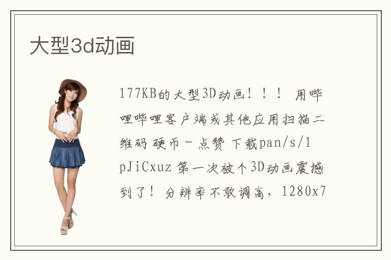 177KB的大型3D動(dòng)畫!??! 用嗶哩嗶哩客戶端或其他應(yīng)用掃描二維碼 硬幣 - 點(diǎn)贊 下載pan/s/1pJiCxuz 第一次被個(gè)3D動(dòng)畫震撼到了!分辨率不敢調(diào)高,1280x760,