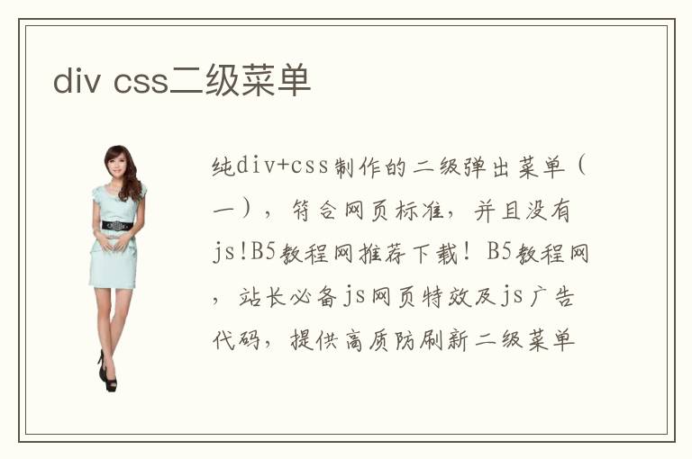 純div+css制作的二級彈出菜單(一),符合網(wǎng)頁標(biāo)準(zhǔn),并且沒有js!B5教程網(wǎng)推薦下載!B5教程網(wǎng),站長必備js網(wǎng)頁特效及js廣告代碼,提供高質(zhì)