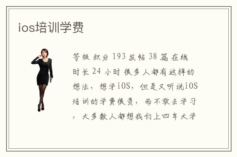 等級 積分 193 發(fā)帖 38 篇 在線時長 24 小時 很多人都有這樣的想法,想學(xué)iOS,但是又聽說iOS培訓(xùn)的學(xué)費很貴,而不敢去學(xué)習,大多數(shù)人都想我們上四年大學(xué)一直花父母