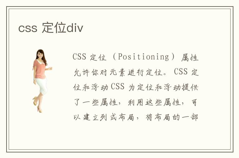 CSS 定位 (Positioning) 屬性允許你對元素進(jìn)行定位。 CSS 定位和浮動 CSS 為定位和浮動提供了一些屬性,利用這些屬性,可以建立列式布局,將布局的一部分與另一部分重疊
