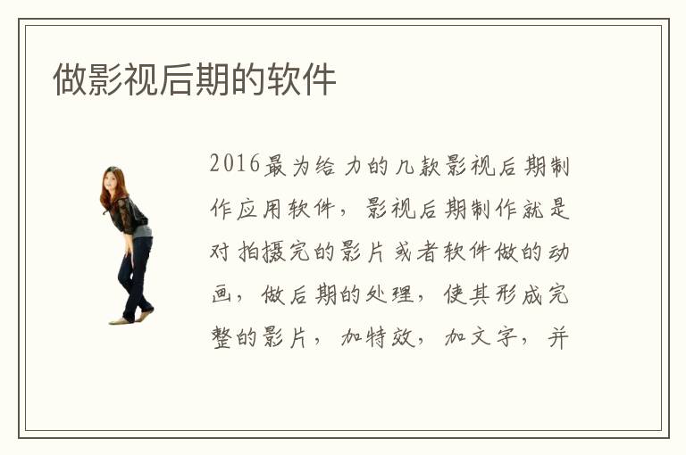2016最為給力的幾款影視后期制作應(yīng)用軟件,影視后期制作就是對(duì)拍攝完的影片或者軟件做的動(dòng)畫,做后期的處理,使其形成完整的影片,加特效,加文字,并且為影片制作聲音等