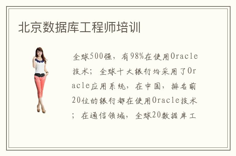 專業(yè)數(shù)據(jù)庫工程師培訓(xùn),我校專業(yè)培訓(xùn)網(wǎng)絡(luò),網(wǎng)站,數(shù)據(jù)庫工程師,學(xué)校座落在清華大學(xué)校內(nèi),有意請與我聯(lián)系 聯(lián)系人王老師 咨詢商家 (歸屬地 北京 )