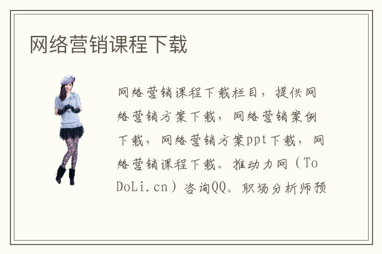 網(wǎng)絡(luò)營銷課程下載欄目,提供網(wǎng)絡(luò)營銷方案下載,網(wǎng)絡(luò)營銷案例下載,網(wǎng)絡(luò)營銷方案ppt下載,網(wǎng)絡(luò)營銷課程下載。推動(dòng)力網(wǎng)(ToDoLi.cn)咨詢QQ。
