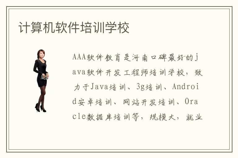 AAA軟件教育是河南口碑最好的java軟件開發(fā)工程師培訓(xùn)學(xué)校,致力于Java培訓(xùn)、3g培訓(xùn)、Android安卓培訓(xùn)、網(wǎng)站開發(fā)培訓(xùn)、Oracle數(shù)據(jù)庫(kù)培訓(xùn)等,規(guī)模大,就業(yè)強(qiáng),口碑好,可