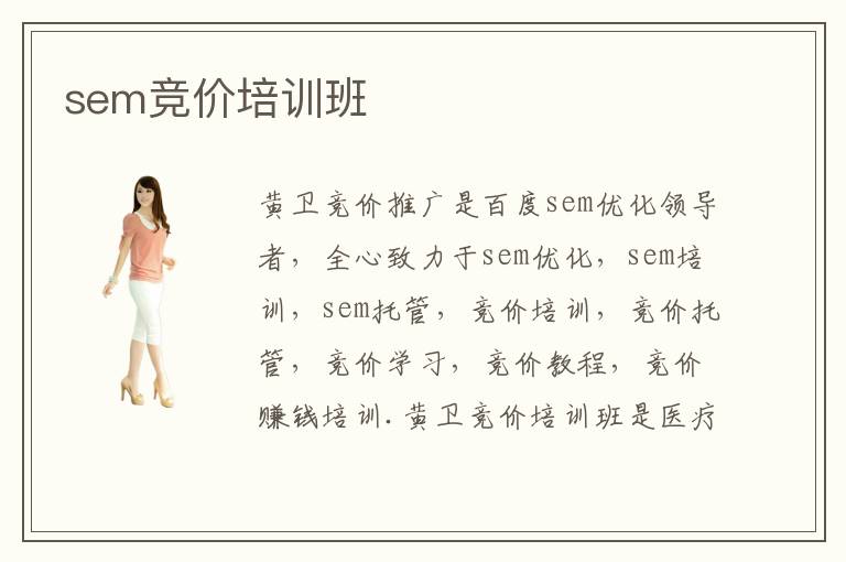 黃衛(wèi)競(jìng)價(jià)推廣是百度sem優(yōu)化領(lǐng)導(dǎo)者,全心致力于sem優(yōu)化,sem培訓(xùn),sem托管,競(jìng)價(jià)培訓(xùn),競(jìng)價(jià)托管,競(jìng)價(jià)學(xué)習(xí),競(jìng)價(jià)教程,競(jìng)價(jià)賺錢培訓(xùn).黃衛(wèi)競(jìng)價(jià)培訓(xùn)班是醫(yī)療競(jìng)價(jià)學(xué)習(xí)的好