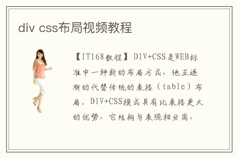 【IT168教程】 DIV+CSS是WEB標準中一種新的布局方式,他正逐漸的代替?zhèn)鹘y(tǒng)的表格(table)布局。DIV+CSS模式具有比表格更大的優(yōu)勢,它結(jié)構(gòu)與表現(xiàn)相分離,代碼簡潔