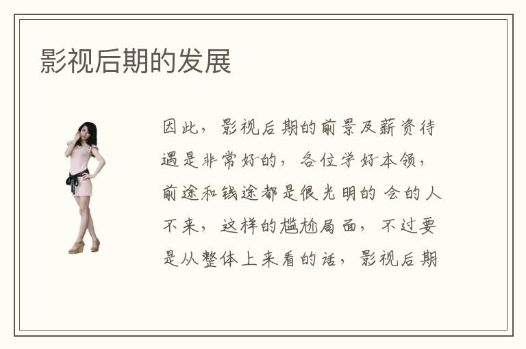 因此,影視后期的前景及薪資待遇是非常好的,各位學(xué)好本領(lǐng),前途和錢途都是很光明的 會(huì)的人不來,這樣的尷尬局面,不過要是從整體上來看的話,影視后期行業(yè)的蓬勃發(fā)展必