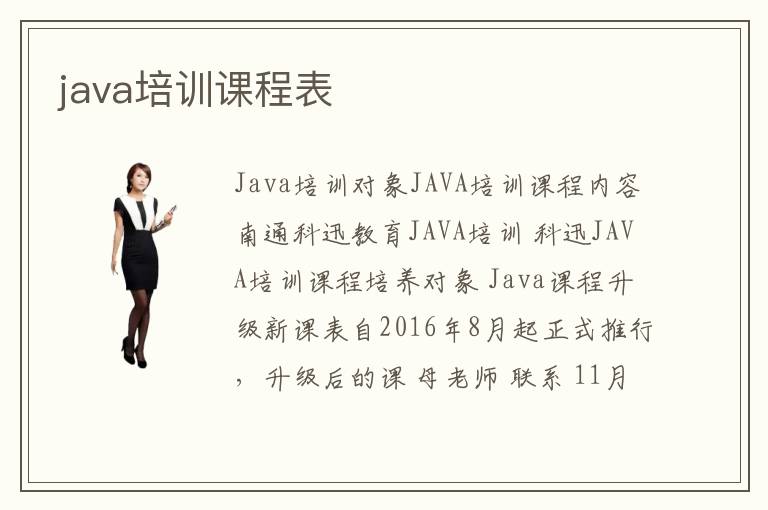 Java培訓(xùn)對(duì)象JAVA培訓(xùn)課程內(nèi)容南通科迅教育JAVA培訓(xùn) 科迅JAVA培訓(xùn)課程培養(yǎng)對(duì)象 Java課程升級(jí)新課表自2016年8月起正式推行,升級(jí)后的課 母老師 聯(lián)系 11月27日