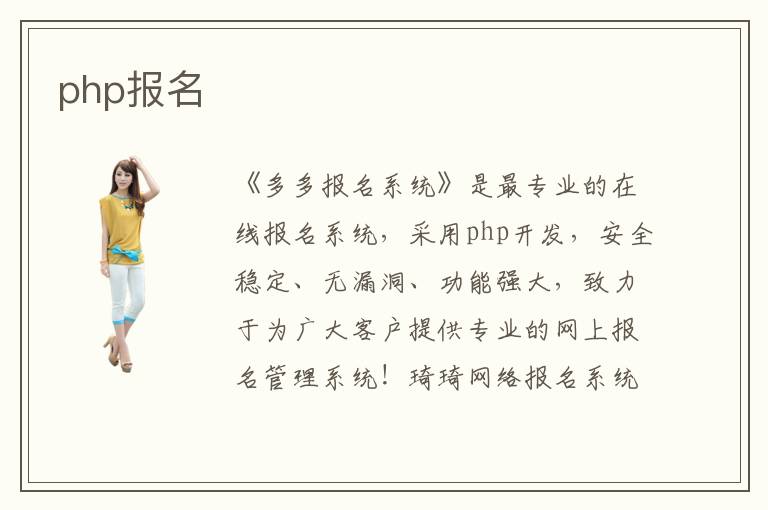 琦琦網絡報名系統PHP版是最專業(yè)的在線網絡報名系統,采用php+mysql開發(fā),安全穩(wěn)定、無漏洞、功能強大,致力于提供專業(yè)的網上報名管理系統,開源網絡報名系統免費版獲取