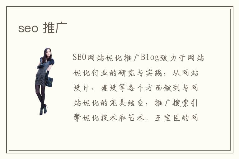 SEO網(wǎng)站優(yōu)化推廣Blog致力于網(wǎng)站優(yōu)化行業(yè)的研究與實(shí)踐,從網(wǎng)站設(shè)計(jì)、建設(shè)等各個(gè)方面做到與網(wǎng)站優(yōu)化的完美結(jié)合,推廣搜索引擎優(yōu)化技術(shù)和藝術(shù)。