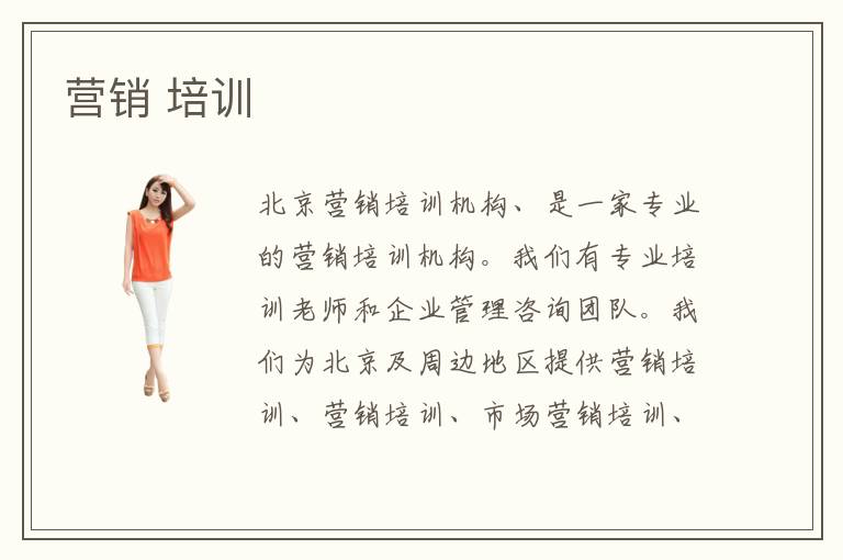 北京營銷培訓(xùn)機(jī)構(gòu)、是一家專業(yè)的營銷培訓(xùn)機(jī)構(gòu)。我們有專業(yè)培訓(xùn)老師和企業(yè)管理咨詢團(tuán)隊。我們?yōu)楸本┘爸苓叺貐^(qū)提供營銷培訓(xùn)、營銷培訓(xùn)、市場營銷培訓(xùn)、北京企業(yè)管理培