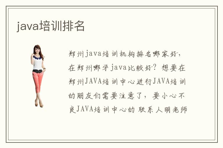 鄭州java培訓(xùn)機(jī)構(gòu)java培訓(xùn)機(jī)構(gòu)排名哪家好,在鄭州哪學(xué)java比較好?想要在鄭州JAVA培訓(xùn)中心進(jìn)行JAVA培訓(xùn)的朋友們需要注意了,要小心不良JAVA培訓(xùn)中心的 聯(lián)系人明老師,聯(lián)系