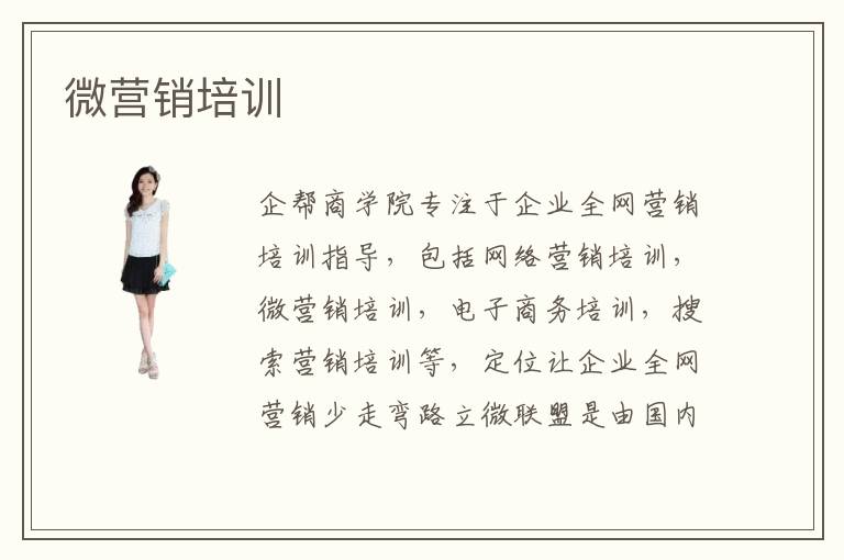 鍍金池/ 網(wǎng)絡(luò)營(yíng)銷培訓(xùn)列表/ 微營(yíng)銷培訓(xùn)