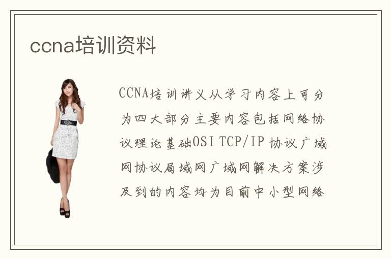 CCNA培訓講義從學習內(nèi)容上可分為四大部分主要內(nèi)容包括網(wǎng)絡(luò)協(xié)議理論基礎(chǔ)OSI TCP/IP 協(xié)議廣域網(wǎng)協(xié)議局域網(wǎng)廣域網(wǎng)解決方案涉及到的內(nèi)容均為目前中小型網(wǎng)絡(luò)解決方案中所必需
