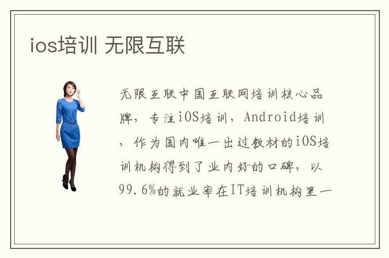 無限互聯中國互聯網培訓核心品牌,專注iOS培訓,Android培訓,作為國內唯一出過教材的iOS培訓機構得到了業(yè)內好的口碑,以99.6%的就業(yè)率在IT培訓機構里一馬當先,iOS開發(fā)