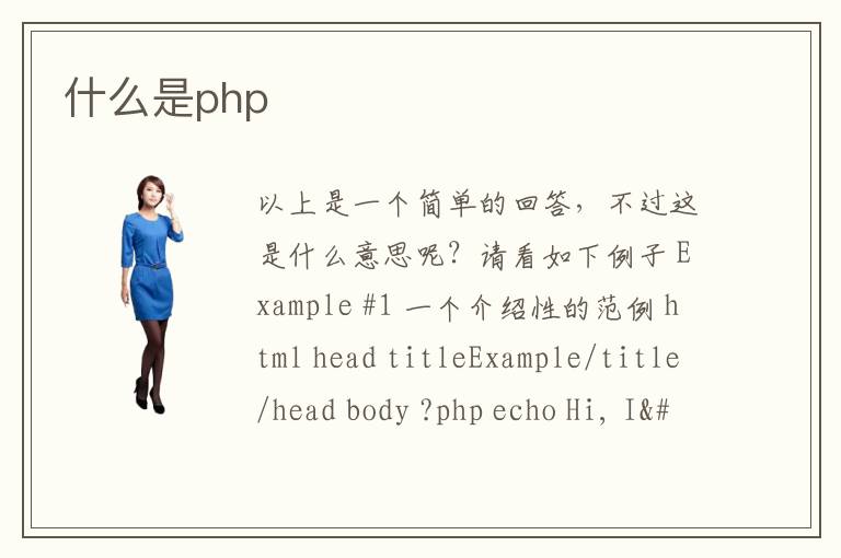 以上是一個簡單的回答,不過這是什么意思呢?請看如下例子 Example #1 一個介紹性的范例 <html> <head> <title>Example</title> </head> <body> <?php echo "Hi, I\'m a PHP