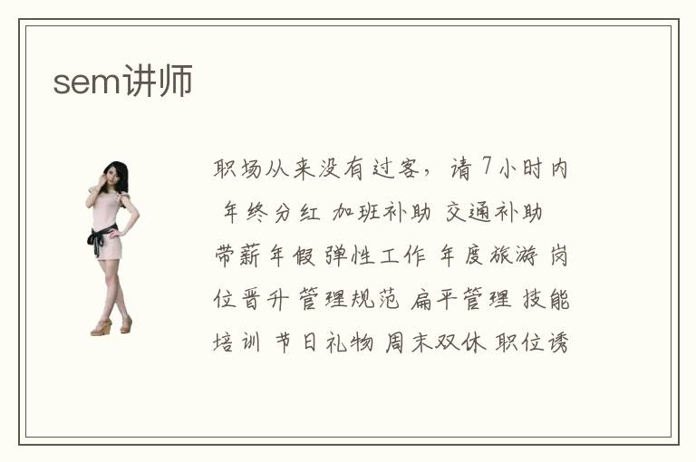 日照京華電商管理服務(wù)有限公司誠聘SEM講師3人,工作地點位于日照,薪資待遇4001-6000元/月,學(xué)歷要求大專或以上,工作經(jīng)驗1-3年等更多招聘信息請點擊查看詳情【智聯(lián)招聘