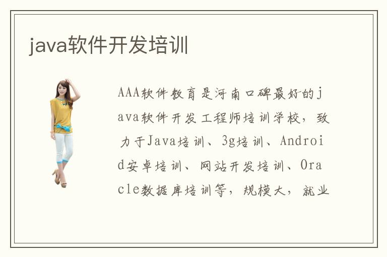 AAA軟件教育是河南口碑最好的java軟件開發(fā)工程師培訓(xùn)學(xué)校,致力于Java培訓(xùn)、3g培訓(xùn)、Android安卓培訓(xùn)、網(wǎng)站開發(fā)培訓(xùn)、Oracle數(shù)據(jù)庫培訓(xùn)等,規(guī)模大,就業(yè)強,口碑好,可