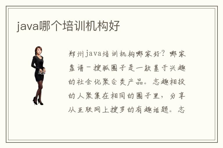鄭州java培訓(xùn)機(jī)構(gòu)哪家好?哪家靠譜 - 搜狐圈子是一款基于興趣的社會(huì)化聚合類產(chǎn)品。志趣相投的人聚集在相同的圈子里,分享從互聯(lián)網(wǎng)上搜羅的有趣話題。