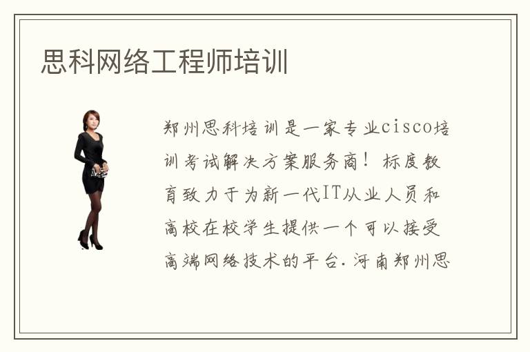 鄭州思科培訓(xùn)是一家專業(yè)cisco培訓(xùn)考試解決方案服務(wù)商!標(biāo)度教育致力于為新一代IT從業(yè)人員和高校在校學(xué)生提供一個(gè)可以接受高端網(wǎng)絡(luò)技術(shù)的平臺.河南鄭州思科cisco培訓(xùn)考試.