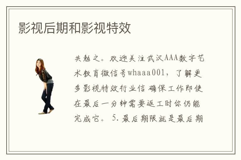 共勉之。歡迎關(guān)注武漢AAA數(shù)字藝術(shù)教育微信號whaaa001,了解更多影視特效行業(yè)信 確保工作即使在最后一分鐘需要返工時你仍能完成它。 5.最后期限就是最后期限 不像學(xué)