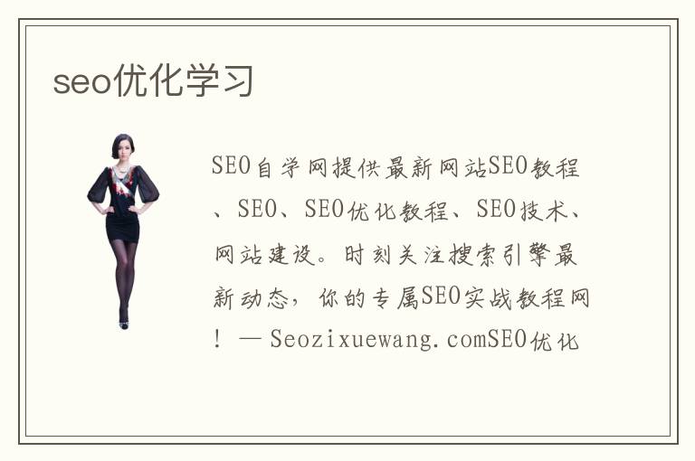 SEO自學(xué)網(wǎng)提供最新網(wǎng)站SEO教程、SEO、SEO優(yōu)化教程、SEO技術(shù)、網(wǎng)站建設(shè)。時刻關(guān)注搜索引擎最新動態(tài),你的專屬SEO實戰(zhàn)教程網(wǎng)!— Seozixuewang.com