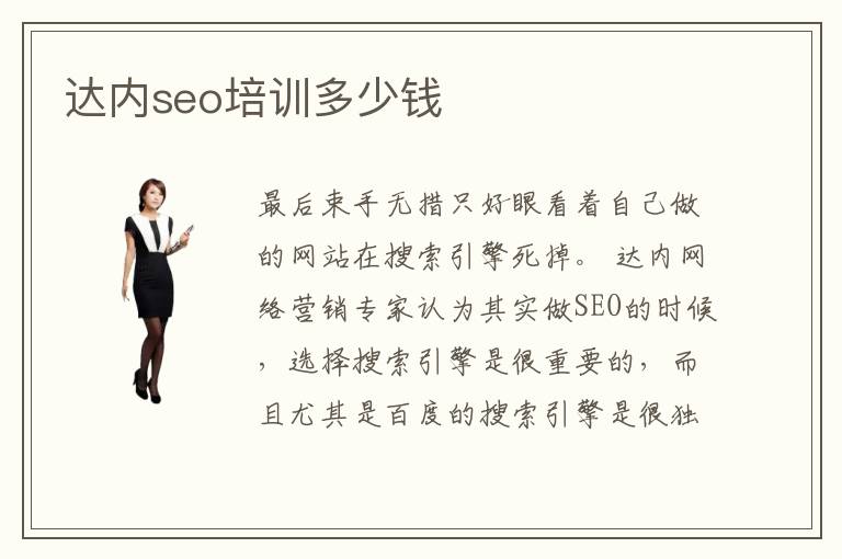 最后束手無措只好眼看著自己做的網(wǎng)站在搜索引擎死掉。 達內(nèi)網(wǎng)絡(luò)營銷專家認為其實做SEO的時候,選擇搜索引擎是很重要的,而且尤其是百度的搜索引擎是很獨特,它不像谷