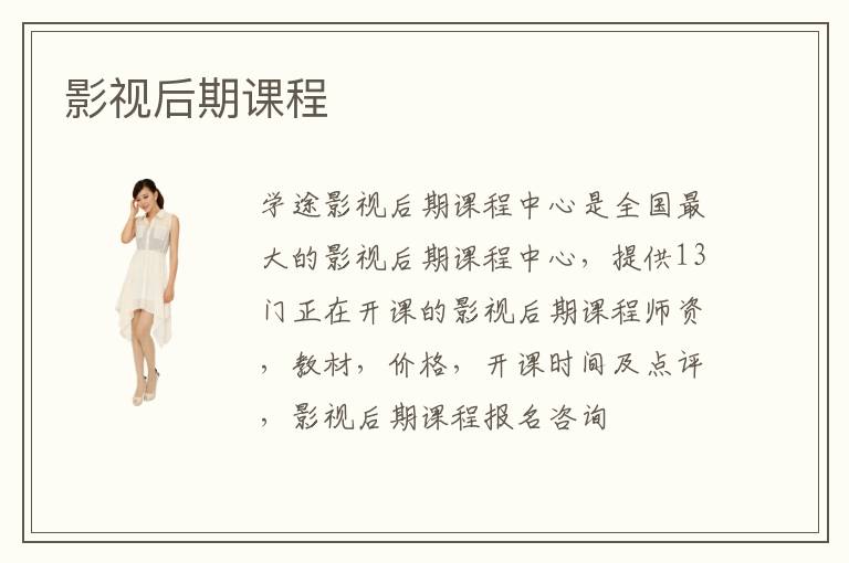 學(xué)途影視后期課程中心是全國最大的影視后期課程中心,提供13門正在開課的影視后期課程師資,教材,價格,開課時間及點評,影視后期課程報名咨詢