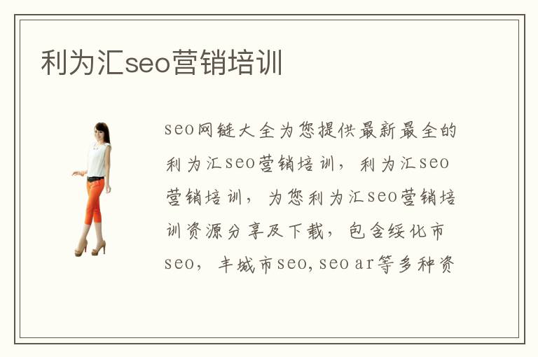 seo網(wǎng)鏈大全為您提供最新最全的利為匯seo營銷培訓,利為匯seo營銷培訓,為您利為匯seo營銷培訓資源分享及下載,包含綏化市seo,豐城市seo,seo ar等多種資訊,請記住我們