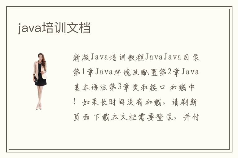 新版Java培訓教程JavaJava目錄第1章Java環(huán)境及配置第2章Java基本語法第3章類和接口 加載中!如果長時間沒有加載,請刷新頁面 下載本文檔需要登錄,并付出相應積分(如