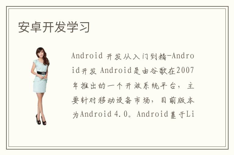 Android 開發(fā)從入門到精-Android開發(fā) Android是由谷歌在2007年推出的一個開放系統(tǒng)平臺,主要針對移動設備市場,目前版本為Android 4.0。Android基于Linux,開發(fā)者可以使用