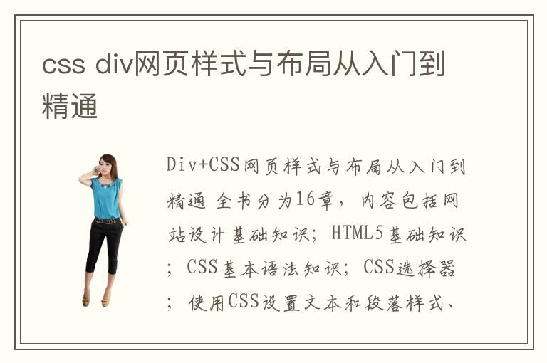 Div+CSS網(wǎng)頁樣式與布局從入門到精通 全書分為16章,內(nèi)容包括網(wǎng)站設(shè)計(jì)基礎(chǔ)知識(shí);HTML5基礎(chǔ)知識(shí);CSS基本語法知識(shí);CSS選擇器;使用CSS設(shè)置文本和段落樣式、設(shè)置圖