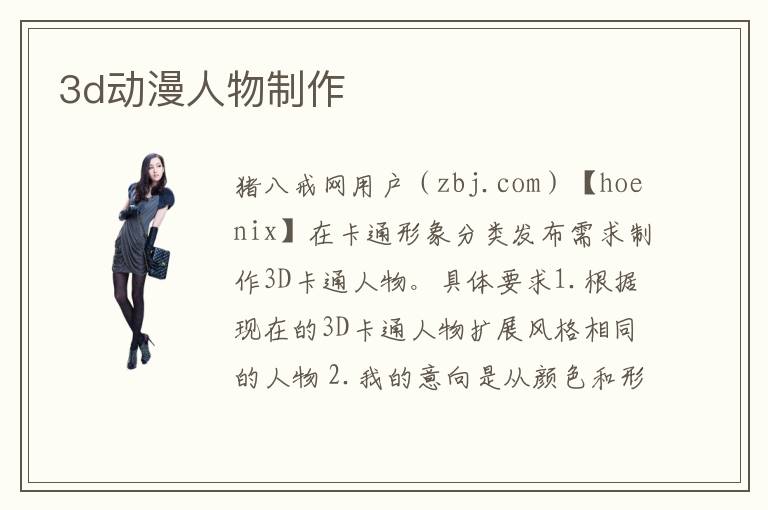 豬八戒網(wǎng)用戶(zbj.com)【hoenix】在卡通形象分類發(fā)布需求制作3D卡通人物。具體要求1.根據(jù)現(xiàn)在的3D卡通人物擴展風(fēng)格相同的人物 2.我的意向是從顏色和形狀上展開擴展