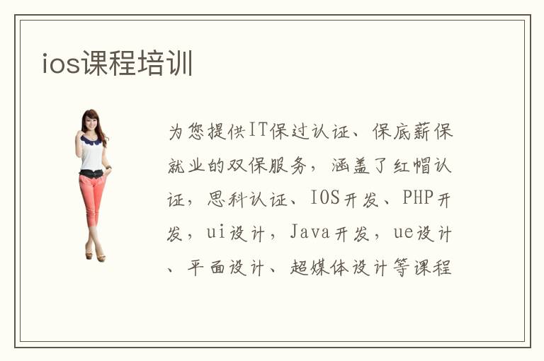 為您提供IT保過認證、保底薪保就業(yè)的雙保服務(wù),涵蓋了紅帽認證,思科認證、IOS開發(fā)、PHP開發(fā),ui設(shè)計,Java開發(fā),ue設(shè)計、平面設(shè)計、超媒體設(shè)計等課程的學(xué)習(xí)內(nèi)容。