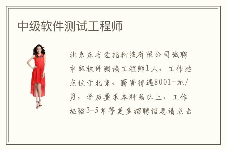 熱門(mén)企業(yè)中級(jí)軟件測(cè)試工程師面試 條中級(jí)軟件測(cè)試工程師面試 條中級(jí)軟件測(cè)試工程師面試 條中級(jí)軟件測(cè)試工程師面試 條中級(jí)軟件測(cè)試工程師面試 "中級(jí)軟件測(cè)試工程師"相關(guān)職位