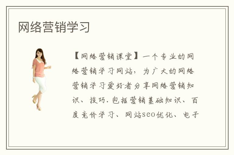 【網(wǎng)絡(luò)營銷課堂】一個(gè)專業(yè)的網(wǎng)絡(luò)營銷學(xué)習(xí)網(wǎng)站,為廣大的網(wǎng)絡(luò)營銷學(xué)習(xí)愛好者分享網(wǎng)絡(luò)營銷知識(shí)、技巧.包括營銷基礎(chǔ)知識(shí)、百度競價(jià)學(xué)習(xí)、網(wǎng)站seo優(yōu)化、電子商務(wù)學(xué)習(xí)、電商運(yùn)