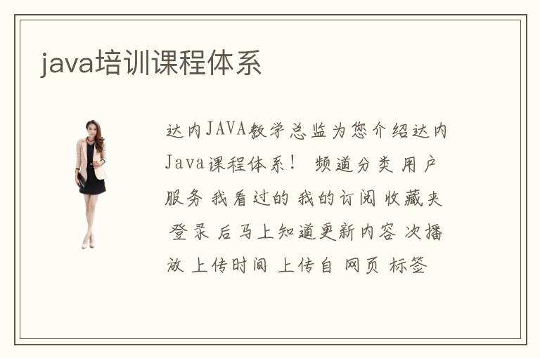 達(dá)內(nèi)JAVA教學(xué)總監(jiān)為您介紹達(dá)內(nèi)Java課程體系! 頻道分類 用戶服務(wù) 我看過的 我的訂閱 收藏夾 登錄 后馬上知道更新內(nèi)容 次播放 上傳時(shí)間 上傳自 網(wǎng)頁 標(biāo)簽 達(dá)內(nèi) 達(dá)內(nèi)培訓(xùn)