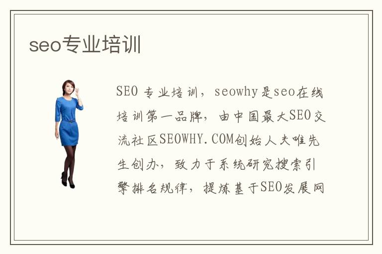 SEO 專業(yè)培訓(xùn),seowhy是seo在線培訓(xùn)第一品牌,由中國最大SEO交流社區(qū)SEOWHY.COM創(chuàng)始人夫唯先生創(chuàng)辦,致力于系統(tǒng)研究搜索引擎排名規(guī)律,提煉基于SEO發(fā)展網(wǎng)絡(luò)