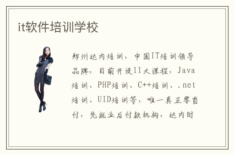鄭州達(dá)內(nèi)培訓(xùn),中國IT培訓(xùn)領(lǐng)導(dǎo)品牌,目前開設(shè)11大課程,Java培訓(xùn)、PHP培訓(xùn)、C++培訓(xùn)、.net培訓(xùn)、UID培訓(xùn)等,唯一真正零首付,先就業(yè)后付款機構(gòu),達(dá)內(nèi)時代科技集團!