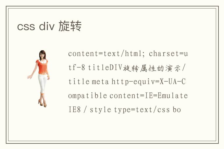 content="text/html; charset=utf-8"> <title>DIV旋轉(zhuǎn)屬性的演示</title> <meta http-equiv="X-UA-Compatible" content="IE=EmulateIE8" /> <style type="text/css"> body { font-