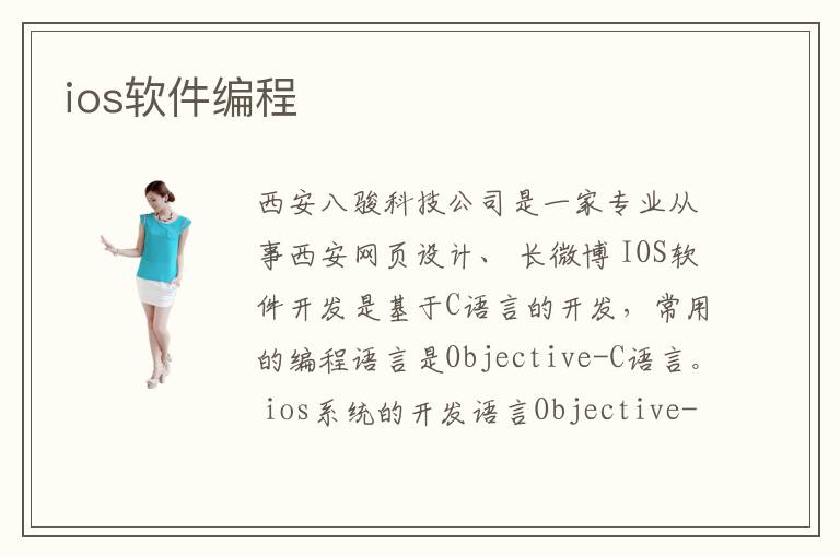 西安八駿科技公司是一家專業(yè)從事西安網(wǎng)頁設(shè)計(jì)、 長微博 IOS軟件開發(fā)是基于C語言的開發(fā),常用的編程語言是Objective-C語言。 ios系統(tǒng)的開發(fā)語言O(shè)bjective-C語言,是一種面