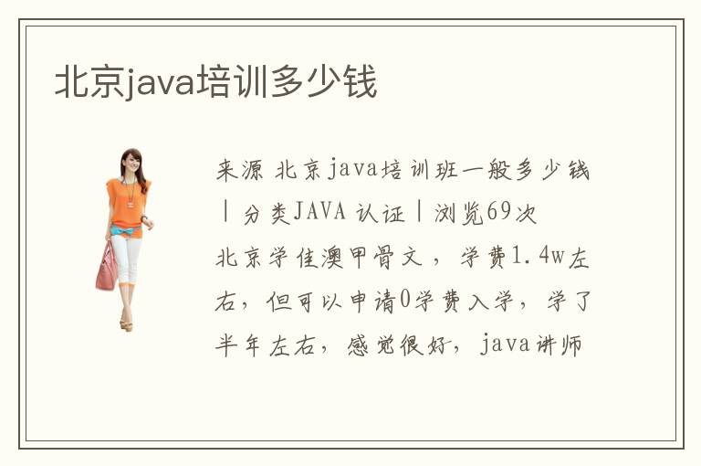 來源 北京java培訓(xùn)班一般多少錢 | 分類JAVA 認證 | 瀏覽69次 北京學(xué)佳澳甲骨文 ,學(xué)費1.4w左右,但可以申請0學(xué)費入學(xué),學(xué)了半年左右,感覺很好,java講師很負責(zé),就業(yè)保障