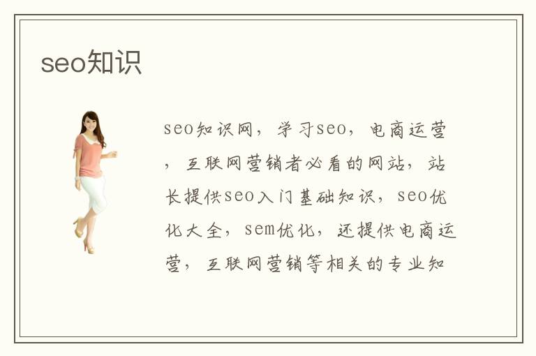 seo知識網(wǎng),學(xué)習(xí)seo,電商運(yùn)營,互聯(lián)網(wǎng)營銷者必看的網(wǎng)站,站長提供seo入門基礎(chǔ)知識,seo優(yōu)化大全,sem優(yōu)化,還提供電商運(yùn)營,互聯(lián)網(wǎng)營銷等相關(guān)的專業(yè)知識,一起分析行