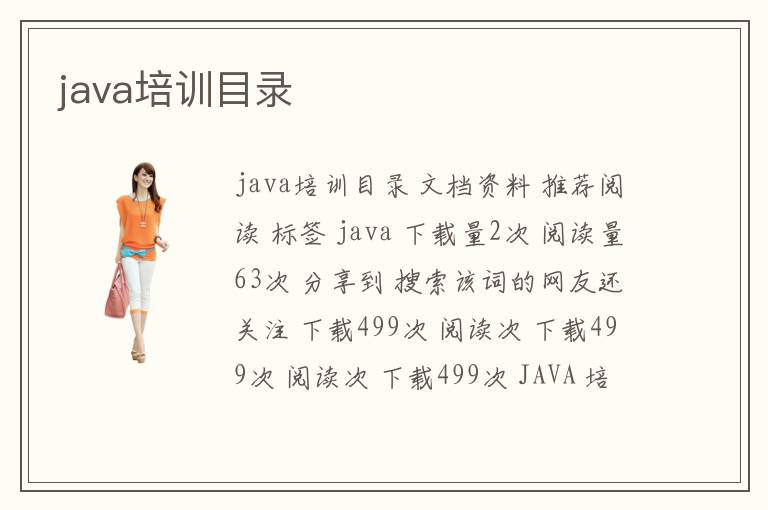 java培訓(xùn)目錄 文檔資料 推薦閱讀 標(biāo)簽 java 下載量2次 閱讀量63次 分享到 搜索該詞的網(wǎng)友還關(guān)注 下載499次 閱讀次 下載499次 閱讀次 下載499次