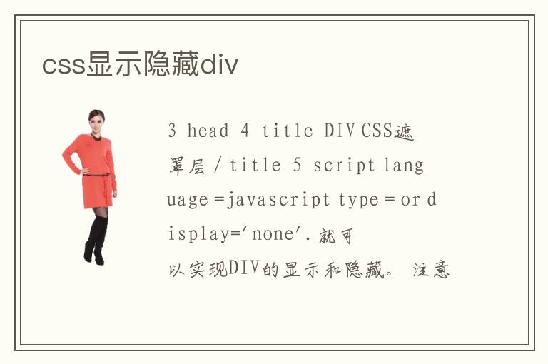 3 < head > 4 < title > DIV CSS遮罩層 </ title > 5 < script language ="javascript" type =" or display=\'none\'.就可以實(shí)現(xiàn)DIV的顯示和隱藏。 注意兩個(gè)DIV的z-index,顯示在最上面